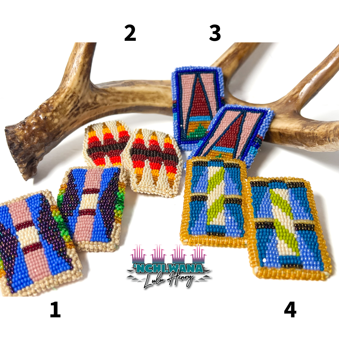 Shop › Geometric Stylez Image 1 of 1 Geometric Stylez $175.00 Size 11 cut, matte, and seed beads Backed with German buckskin and finished with post backsApproximately 1.2” x 2.2” Numbered Earring: 1 2 3 4 Purchase Added! Size 11 cut, matte, and seed beads Backed with German buckskin and finished with post backsApproximately 1.2” x 2.2” Reviews Reviewer Name Review Date Star Rating Description Posted on Etsy Product Show More